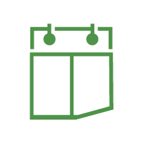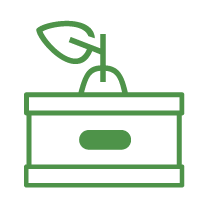 Grünes Symbol mit einer Ökokiste voller Gemüse und Obst, das die Produktauswahl symbolisiert.