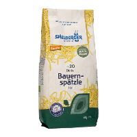 Für die Dinkel-Bauernspätzle hellwird bester demeter-Dinkel verwendet. In der eigenen Mühle wird das Getreide in mehreren Schritten zu einem mittelhellen Mehl vermahlen, das noch wertvolle Bestandteile des Korns enthält. Anschließend wird das Mehl zu Spätzle verarbeitet. Diese Spätzle schmecken Dank dem Dinkel fein nussig und eignen sich für traditionelle schwäbischen Gerichte wie Käsespätzle oder Linsen mit Spätzle. Sie schmecken aber auch mit dunklen Soßen, Sahne- oder Pilzsoßen. Außerdem sind sie auch lecker in Eintöpfen und Aufläufen. Die Verpackungen der Nudeln basieren zu 100% auf dem nachwachsenden Rohstoff Holz. Sie können vollständig im Altpapier gesammelt und zu 100% recycelt werden. Durch eine dauerhafte Partnerschaft mit dem Bergwaldprojekt e.V. finanziert die Spielberger Mühle jedes Jahr das Pflanzen von Bäumen sowie die Pflege und den Erhalt des bestehenden Waldes. Letzteres ermöglicht dem Wald, sich auf natürliche Art zu verjüngen - das heißt neue Bäume wachsen und der Wald gedeiht. Damit wird der Papierkreislauf geschlossen, indem der Papierverbrauch für die Verpackungen ausgeglichen und der Natur etwas zurückgegeben wird.Dinkel schmeckt fein nussig. Mit dem Beginn der Biobewegung wurde Dinkel als unverfälschtes Urgetreide wiederentdeckt. Bis zum Mittelalter galt er als das wichtigste Brotgetreide. Erst mit der Intensivierung der Landwirtschaft und dem verstärkten Einsatz von Kunstdünger geriet das Getreide in Vergessenheit. Das hatte einen ganz einfachen Grund: Dinkel reagiert - anders als Weizen - auf die Gabe von Stickstoffdünger kaum mit einer Erhöhung des Ertrags. Im Bioanbau werden dagegen die positiven Eigenschaften des Getreides geschätzt. Neben dem fein nussigen Geschmack und der besseren Verträglichkeit, zeichnet sich Dinkel dadurch aus, dass er auch in niederschlagsreicheren Gebieten und höheren Lagen gut gedeiht.