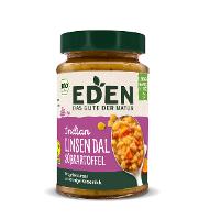 Wasser, 22 % vorgegarte Linsen* (Linsen*, Wasser), Kartoffeln*, 5 % Süßkartoffeln*, Tomaten*, 5 % Kokosnussmilch* (Kokosnussextrakt*, Wasser), Zwiebeln*, Gemüsepaprika*, Sonnenblumenöl*, Maisstärke*, Gewürze* (Knoblauch*, Paprika*, Kardamom*, Ingwer*, Kreuzkümmel*, Zitronengras*, Koriandersamen*, Curcuma*, Chili*, Pfeffer*, Zimt*, Nelken*, Kümmel*, Fenchel*, Bockshornkleesamen*), Meersalz, Apfelsaftkonzentrat*, Limettensaft*, Pfefferminze*.| Energie | Fett | gesättigte Fettsäuren | Kohlenhydrate | Zucker | Eiweiss | Salz |