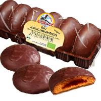 Sauerkirsch-Konfitüre* 32 % (Rübenzucker*, Sauerkirschen*, Geliermittel (Pektin), Säuerungsmittel (Zitronensäure)), WEIZENmehl*, Invertzuckersirup*, Zartbitterschokolade* 16 % (Kakaomasse*, Rohrzucker*, Kakaobutter*), DinkelWEIZENmehl*, Palmfett*, Backtriebmittel (Ammoniumbicarbonat, Kaliumcarbonat), Karamellzuckersirup*, Säuerungsmittel (Zitronensäure), Gewürze* (Zimt*, Nelken*, Anis*, Muskat*).| Energie | Fett | gesättigte Fettsäuren | Kohlenhydrate | Zucker | Ballaststoffe | Eiweiss | Salz |