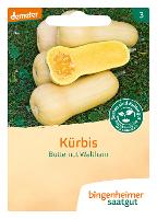 Ein rankender Speisekürbis mit einer ausgefallenen, birnenähnlichen Form. Das zarte orangefarbige Fruchtfleisch ist kernarm, der Geschmack ist nussig. Die 1,5 - 2 kg schweren Kürbisse