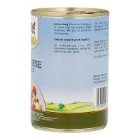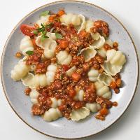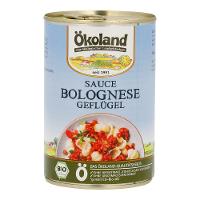 Trinkwasser, 21% Geflügelfleisch* (Pute*, Huhn*), Tomatenmark*, Zwiebeln*, Tomaten*, Karotten*, Lauch*, Sonnenblumenöl*, Reismehl*, Meersalz, Rohrohrzucker*, Maisstärke*, Gewürze* (Paprika*, Pfeffer*), Knoblauch*, Kräuter* (Oregano*, Basilikum*, Bohnenkraut*, Thymian*, Rosmarin*, Fenchel*).| Energie | Fett | gesättigte Fettsäuren | Kohlenhydrate | Zucker | Ballaststoffe | Eiweiss | Salz |