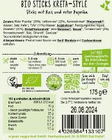 Roter Paprika, Tomaten und Vollkornreis vereinen sich in den Kreta-Sticks zu einem fruchtigen mediterranen Genuss. In Marinade eingelegter Tofu sorgt für die besondere griechische Note, während goldener Sesam die Rezeptur abrundet.