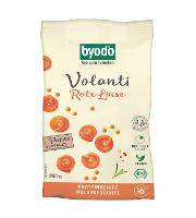 Rund, rot und revolutionär lecker schmecken die Volanti aus roten Bio-Linsen im Byodo Sortiment. Neben wertvollem. pflanzlichen Eiweiß enthalten die feinen, glutenfreien Bio-Nudeln auch jede Menge Ballaststoffe und sättigen auf köstliche Art langanhaltend. Pro Portion rechnet man nur 50 - 60g  der leuchtend roten Nudeln.Die ansprechende Volanti-Form (fliegende Untertasse) sorgt dafür, dass sich Sauce besonders köstlich im Rand verfängt - für ein wunderbar sauciges Geschmack-Erlebnis.