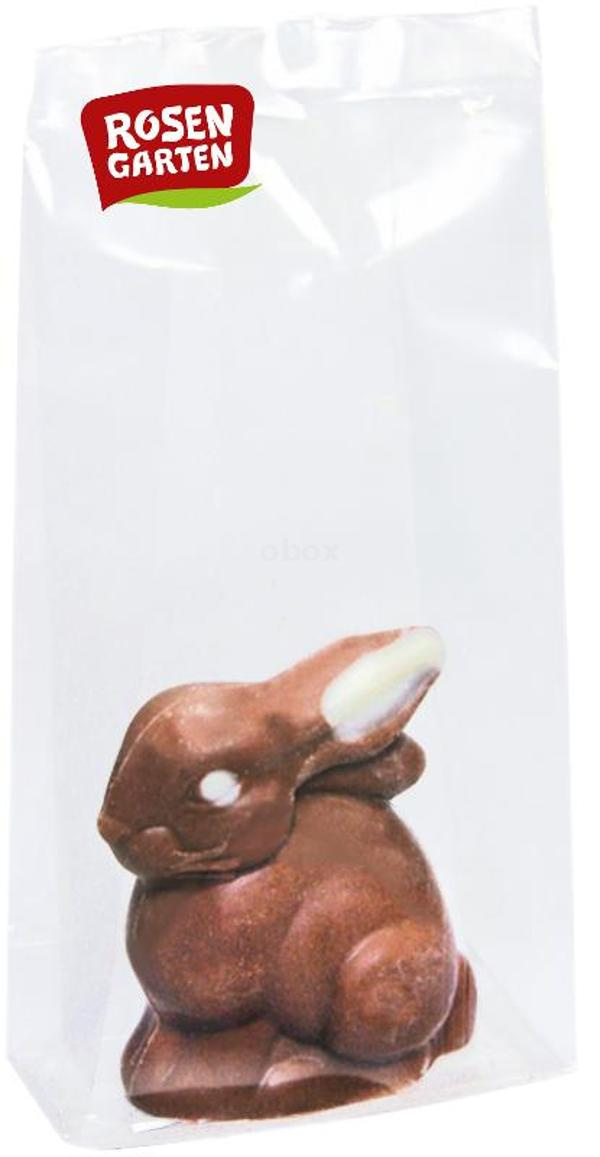 Vollmilch-Osterhase mit leckerer Milchcreme gefüllt und mit weißer Schokolade geschminkt.