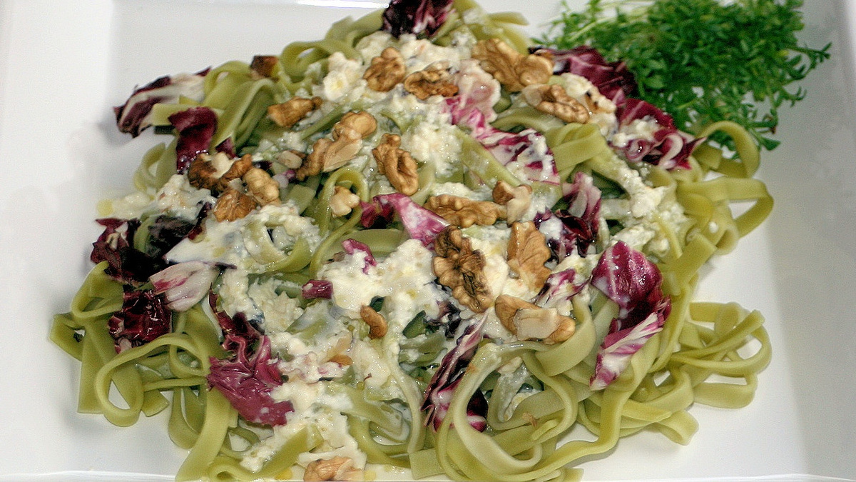 Radicchio-Nudeln mit Käse-Walnuss-Sauce