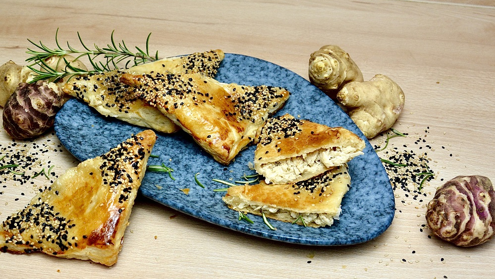 Topinambur-Ecken mit Ziegenfrischkäse