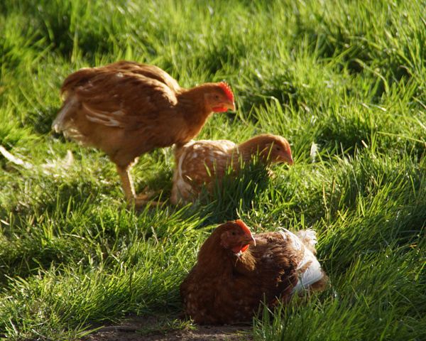 Die Küken für die Hähnchenmast werden auf dem Hof nicht selbst gebrütet, sondern diese erhalten sie von einer Bio-Brüterei aus Österreich. Wenn die Küken ca. 4 Wochen alt sind kommen sie in Hühnerställe, die von Familie Wiedemann selbst gebaut wurden. Die Ställe sind so konstruiert, dass die Hähnchen selbst entscheiden können, ob sie sich lieber im Stall oder draußen im Grünen aufhalten wollen.