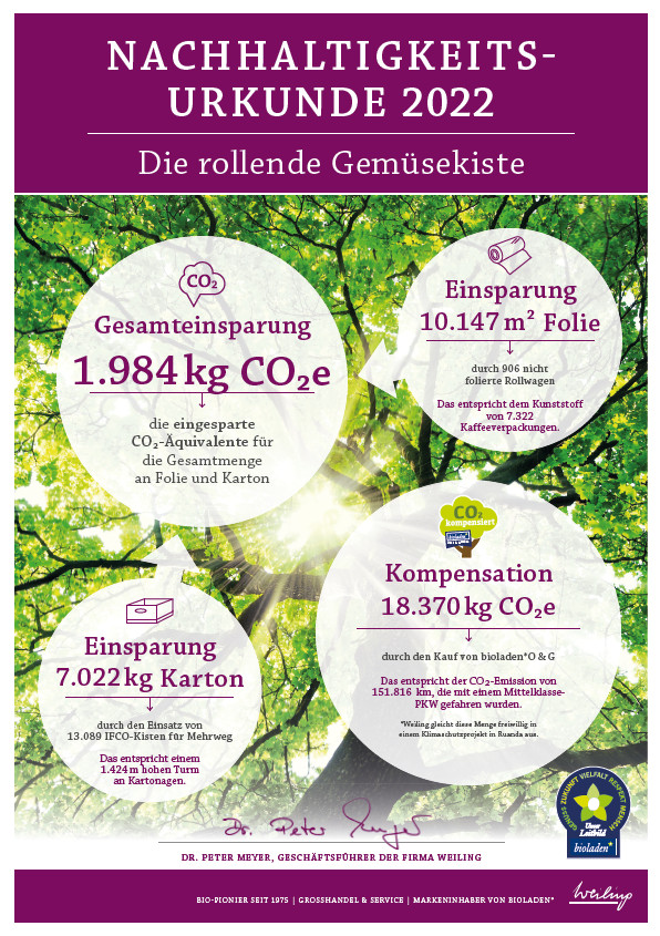 Wir sind einer von 40 Ökokisten-Betrieben und erfüllen höchste Standards, wenn es um Bio und Nachhaltigkeit geht. Jedes Jahr werden wir dazu auf Herz und Nieren geprüft. Wir wurden in 2024 ausgezeichnet in den Bereichen Produktherkunft, Kundenorientierung und Verbandsinternes Engagement! Zertifikat anzeigen
